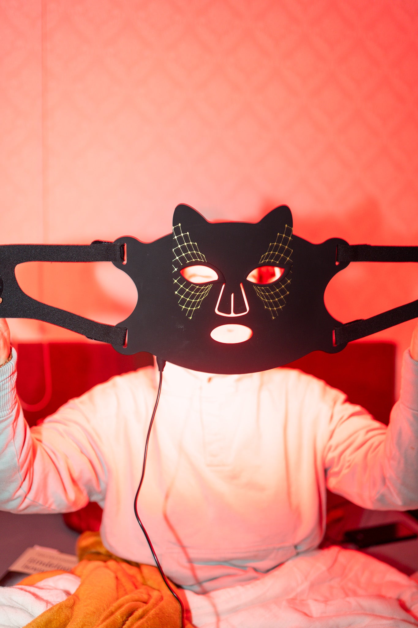 Het masker werkt door middel van verschillende kleuren LED licht. Elke kleur heeft zijn eigen werking. Het rode licht stimuleert de collageenproductie en